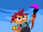 This little painter doesn't seem too happy about that, but they'll have to face an onslaught of possessed paint creatures if they want to save the world from complete decolouration!